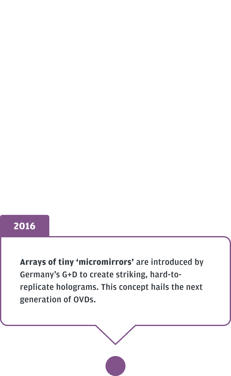 Paper money can be traced back to the promissory notes of ancient China, Carthage, and the Roman Empire, over 2000 years ago—but the banknote as we know it today emerged in the 7th century and is still evolving. The main driver of its development has been the battle against counterfeits. With each advance in technology, forgers have been given new tools, and banks have been forced to devise ever-more ingenious innovations to foil them...